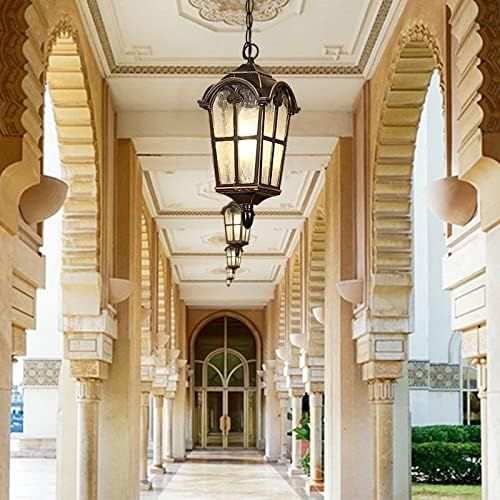 Hdc Traditional Victoria Glass Lantern Outdoor Garden Porch Suspension Light Vintage Ceiling Pendant Lamp