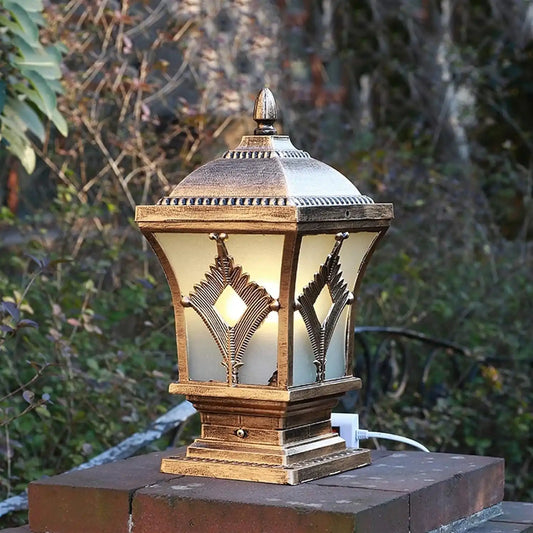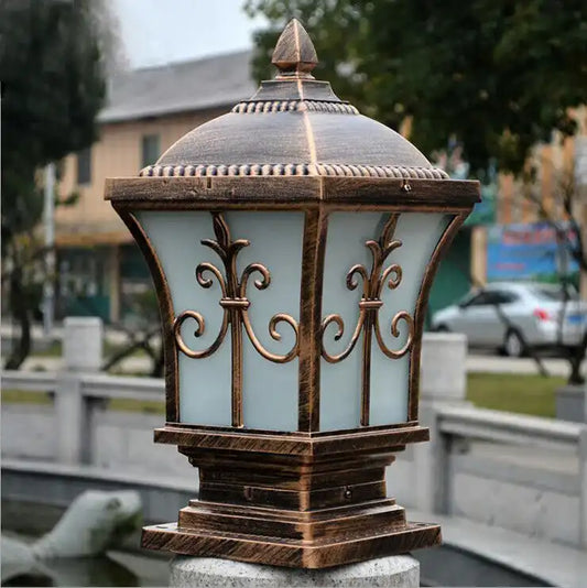Hdc Vintage Pillar Light Glass Lantern Garden Lighting Outdoor Yard Gate Post Lamp