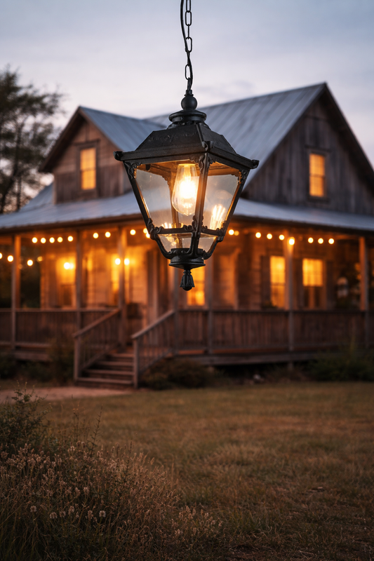 HDC Classic Black Rustic Outdoor Hanging Lantern for Farmhouse, Porch & Balcony
