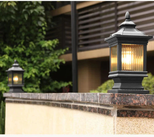 HDC European Luxury E27 Outdoor Garden Glass Post Light Waterproof Courtyard Door Decorative Gate Lamp