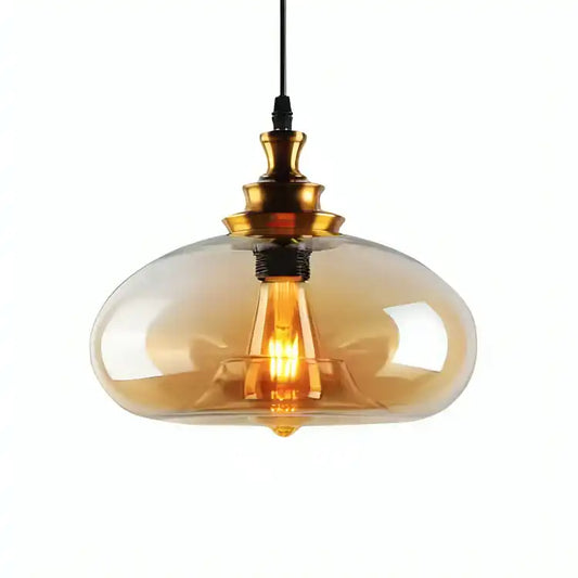 HDC 1-Light Gold Brass Vintage Amber Glass Pendant Ceiling Light - Warm White