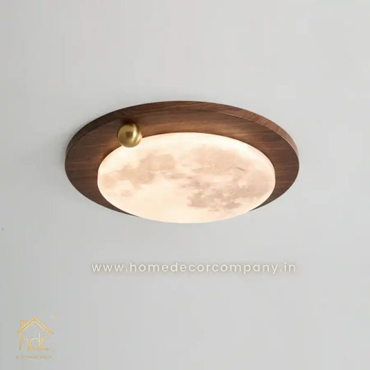 HDC Modern Minimalist Iron Imitation Walnut Wood Grain Acrylic Round Shade LED Flush Mount Ceiling Light For Bedroom