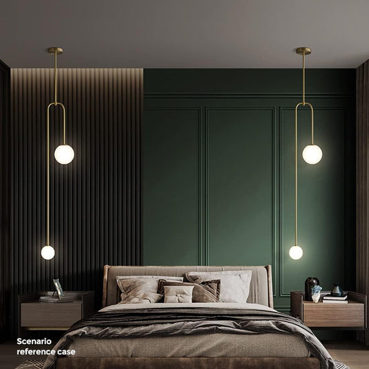 HDC Slim Gold Tube Modern Minimal Hanging LED Lamp for Bedside, Dining & Living Spaces