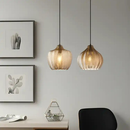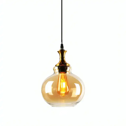HDC Led 1-Light Amber Glass Iron Hanging Pendant Ceiling Lamp Light