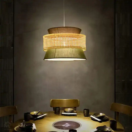 Hdc Contemporary Rattan Ceiling Pendant Light, Funnel Style Blackish Green Hanging Light, Fabric Pendant Lamp for Restaurant, Living Room, Dining Room