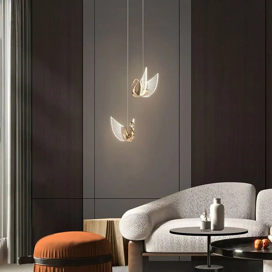 HDC LED Gold Swan Bedside Hanging Pendant Ceiling Lamp Light Fixture - Warm White