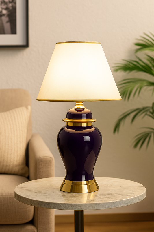 Hdc Lean Modern Purple Ceramic Nightstand Lamp With High-quality Fabric Lampshade