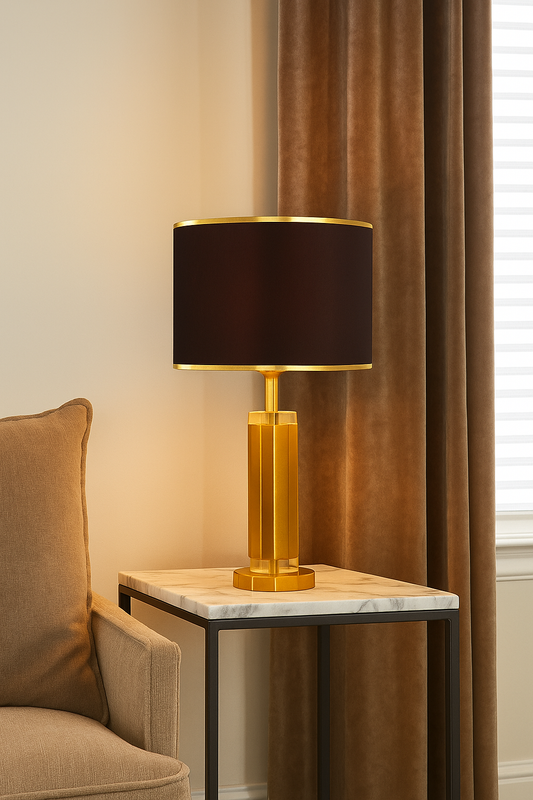 Hdc Luxury Black Gold Nightstand Lamp With High-quality Fabric Lampshade