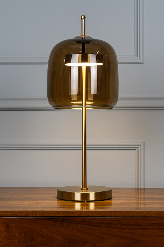 Hdc Modern Antique Brass Finish Table Lamp With Glass Shade
