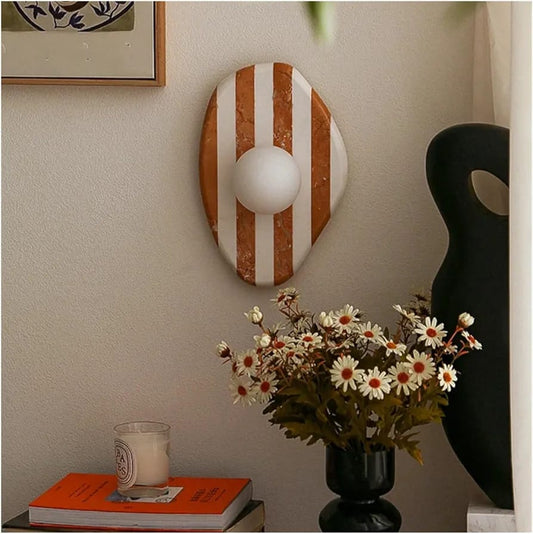 HDC Irregular Marble Natural Stone Red/Black Striped Wall Light For Living Room, Bedroom