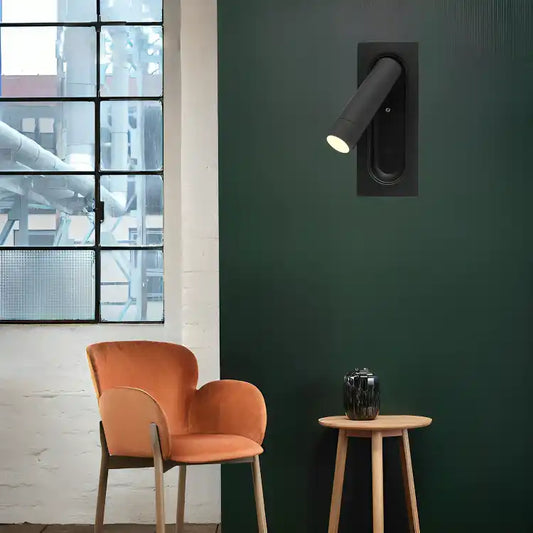 HDC Led Black Bedside Wall Light with Adjustable Linear Spot - Warm White