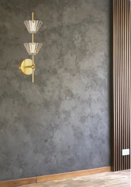 Hdc Amber/Smoke Glass Wall Light Brass Gold Metal Bedroom Living Room Wall Light - Tricolor