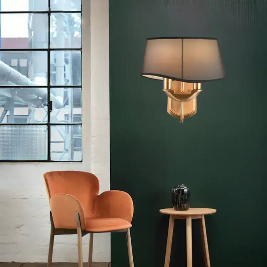Hdc 2 Light Wall Sconce Light Electroplated Brushed Brass With Black Fabric Shade - Warm White