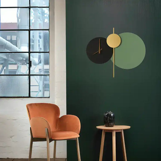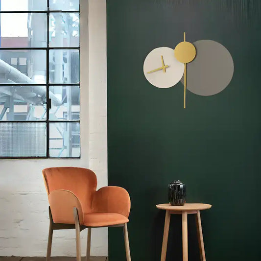 Hdc Black-Green 3 LED Modern Electroplated Gold Wall Art Light with Clock - Warm White