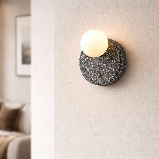 HDC Luxury Textured Stone Finish Wall Light with Opal Globe Shade For Living Room, Bedroom
