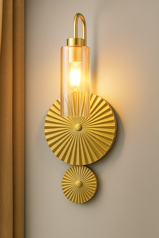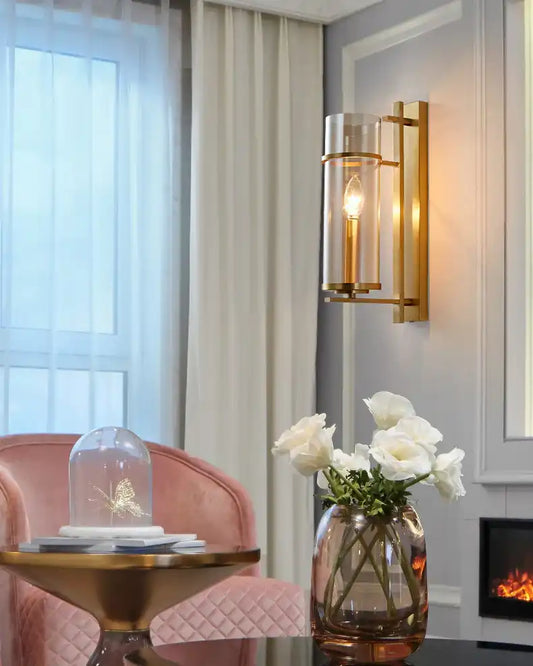 HDC Gold Metal Cage Body Antique Brass Cylinder Glass Wall Light