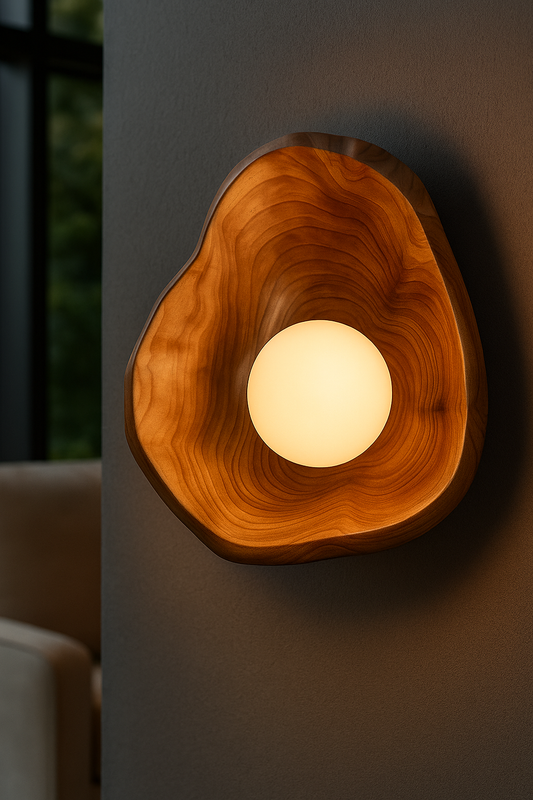 Hdc Minimalist Oval Wooden Wall Lamp Warm LED Sconce Light Elegant Teak Finishfor Bedroom & Living Room
