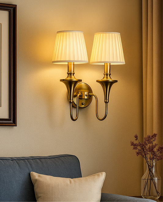 Hdc Antique Finish Wall Lamp with Off White Cotton Fabric Shade