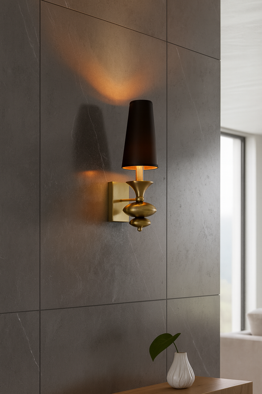 HDC Regal Twin Noir Wall Sconce with Brushed Gold Detailing and Black Shades