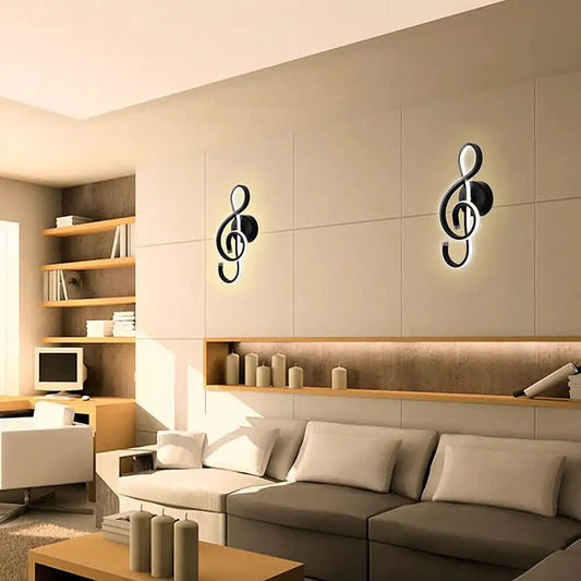 HDC LED Black Musical Note Wall Lamp Bedside Spiral Night Light- Tricolor