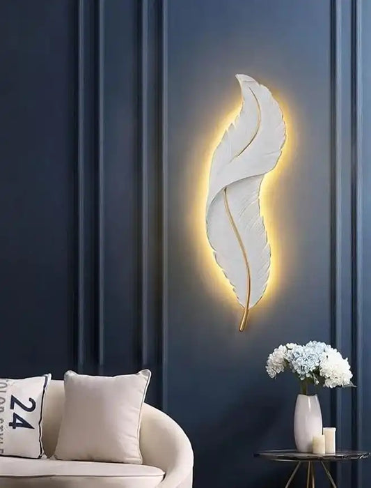 HDC 600mm Nordic Modern Creative Feather Light Led Wall Lamp Bedroom Bedside Resin Lamp