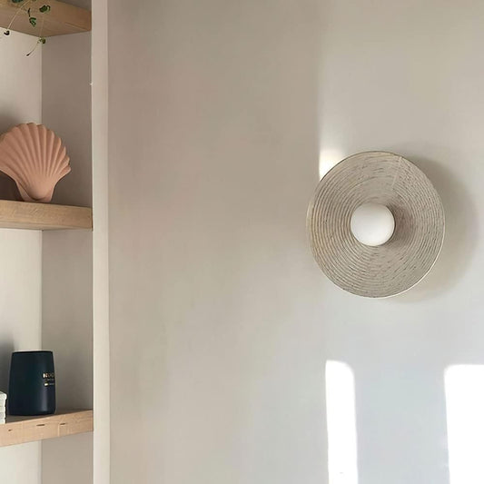 Hdc Vintage Japanese Style Round Stripe Rustic Circular Wall Light for Kids Room Bedroom Staircase Art Decor