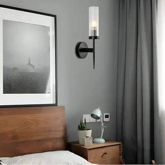 HDC 1 Light Black Clear Glass Long Wall Light - Warm White