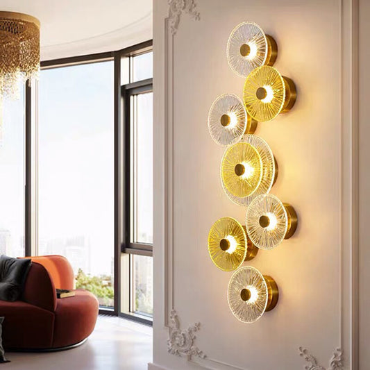 HDC 7 Light Modern Golden Glass Led Wall Art Lamp - Warm White