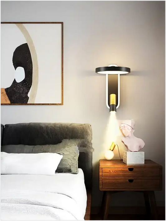 Hdc Led Wall Lamp With Spotlight 3 Colors Changeable Adjustable Angle - Black Bedside Lamp Study Room Bedroom, Chandeliers For Kitchen