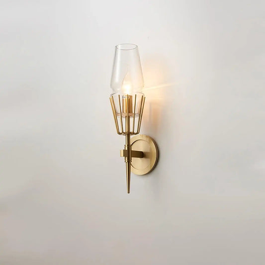 HDC Light Gold Metal Amber Glass Wall Light Copper Metal