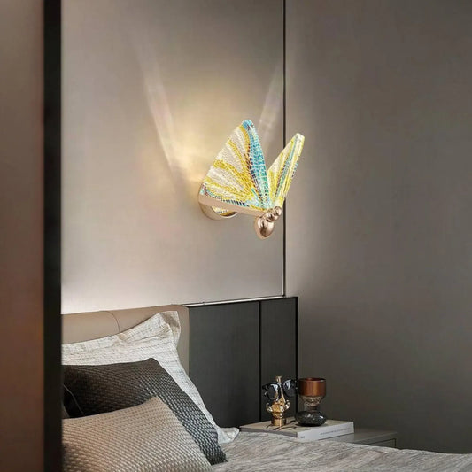 HDC Led Acrylic Butterfly Shape Golden Metal Wall Light - Tricolor