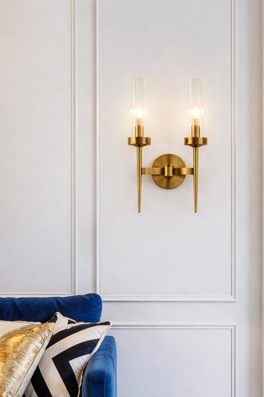 HDC 2 Light Antique Brass Clear Glass Long Wall Light - Warm White