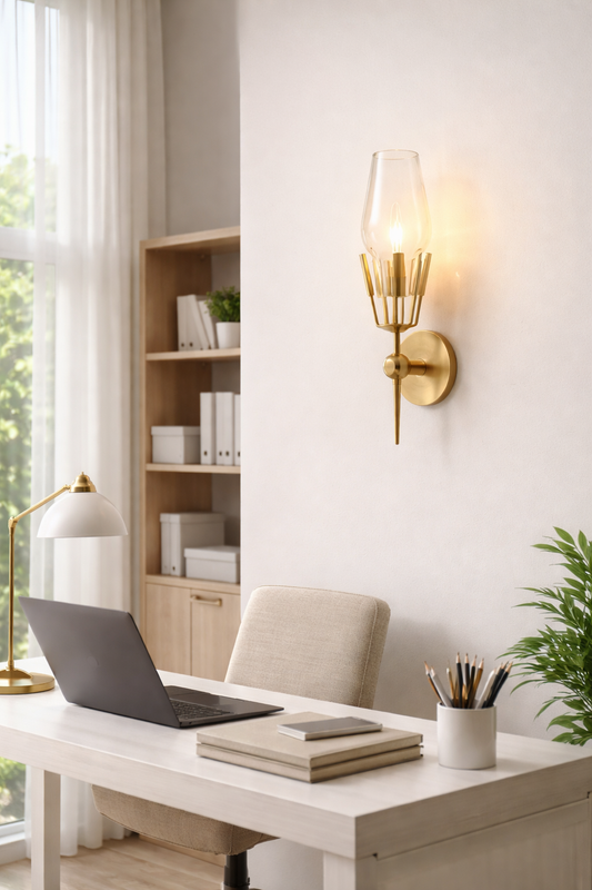 HDC Classic Luxe Wall Lamp with Textured Gold Base & White Fabric Shade