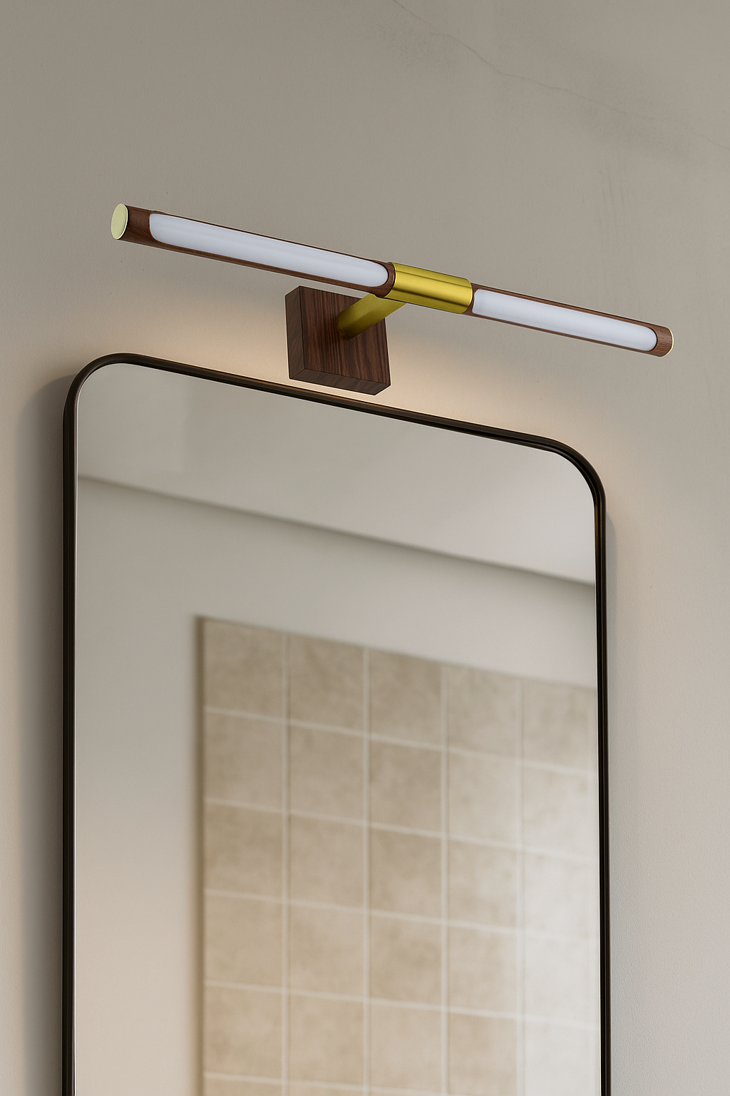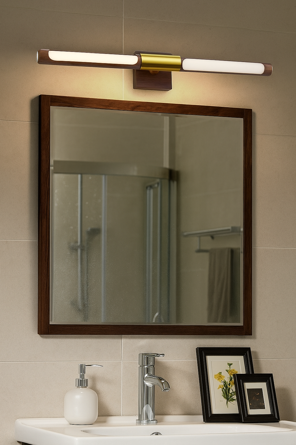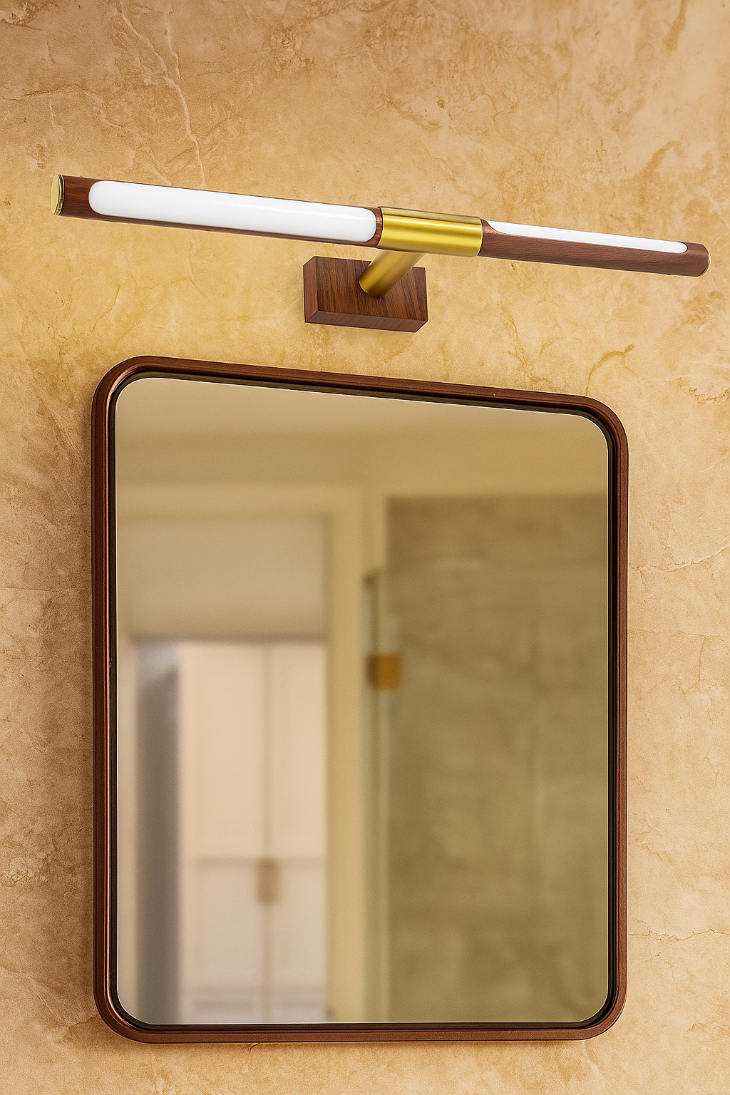 A premium fusion of brushed gold metal and rich walnut wood texture, giving this picture light a warm, designer aesthetic. Perfect for modern, rustic, Scandinavian, or luxury homes that require a refined décor element. -