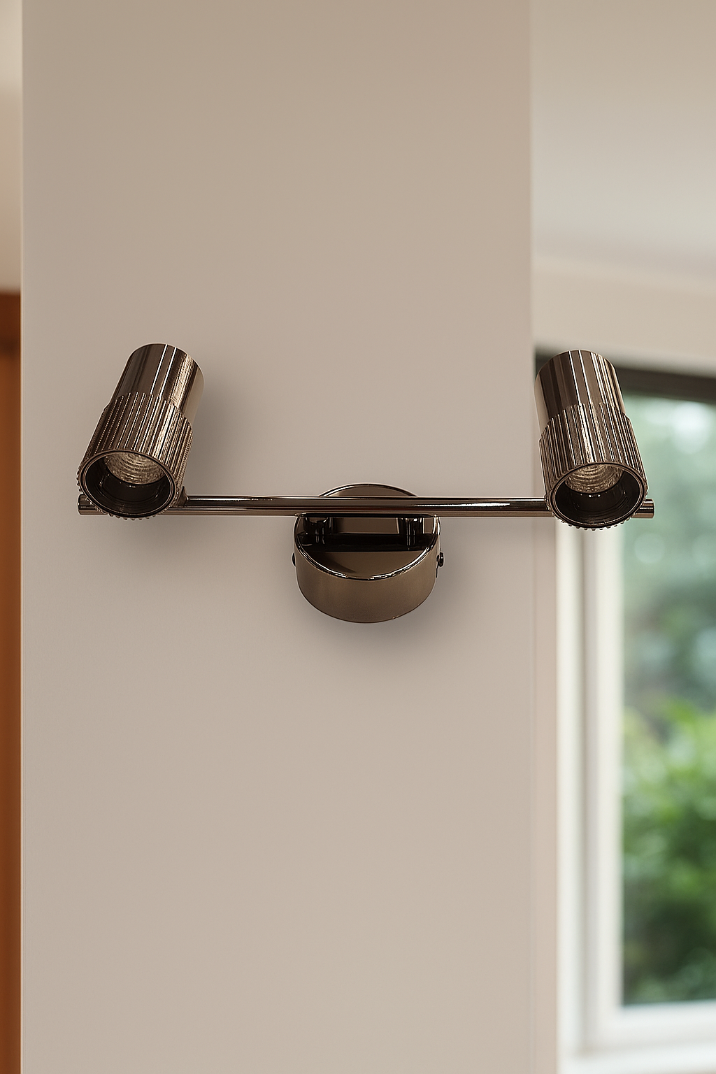 - Elegant Dual-Head Design: Two cylindrical LED spotlights mounted on a sleek, horizontal bar for a perfectly balanced and minimalist appearance. Each head can be individually adjusted to create targeted or ambient lighting as per your need.