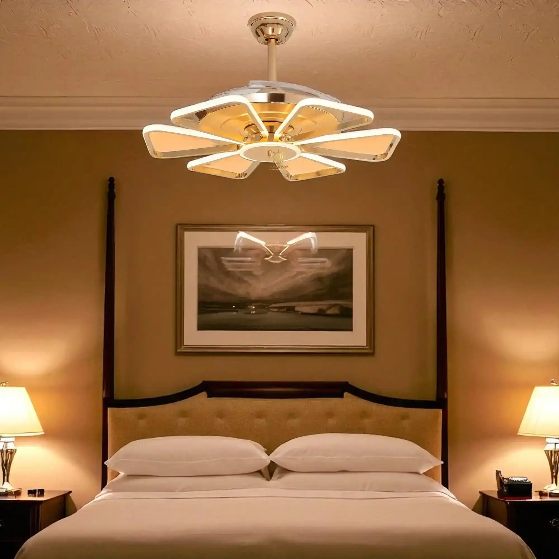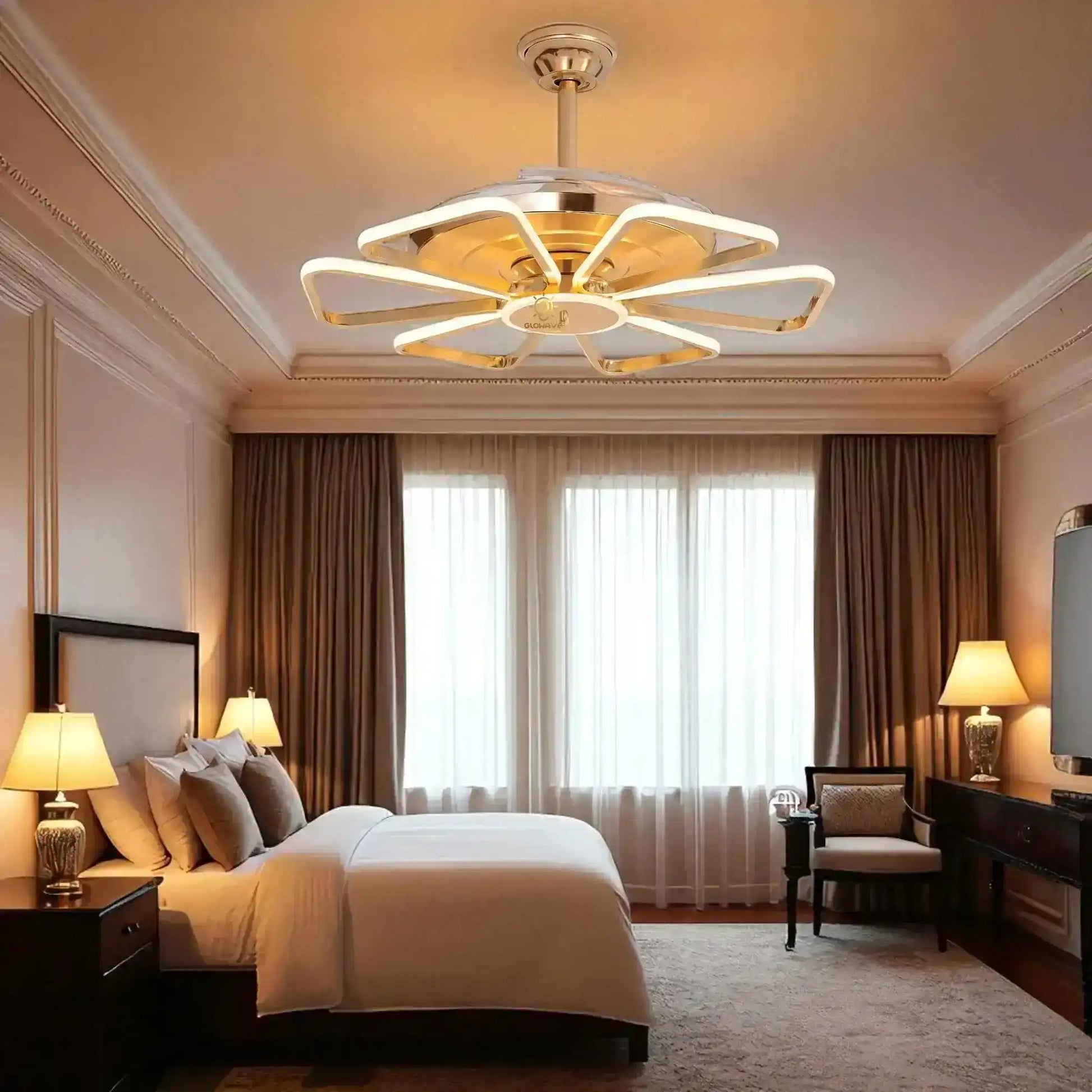 A stunning fusion of decorative lighting and powerful cooling. These ceiling fan chandeliers are perfect for modern Indian homes, offering the dual benefits of energy-efficient LED lighting and noiseless retractable fan blades. Designed for living rooms, bedrooms, dining areas, and office spaces, these innovative fixtures elevate both aesthetics and functionality in your space. With options in remote control, dimmable lights, and multiple fan speeds, our fan chandeliers blend style, comfort, and smart utility.