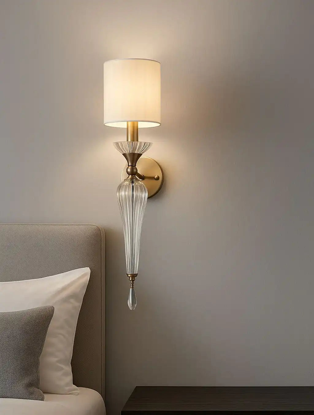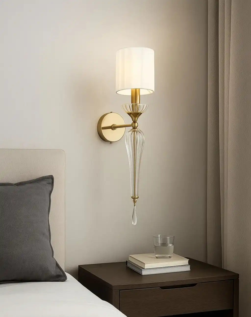- Stylish Design: Gold Finish Glass Shade Wall Sconce.