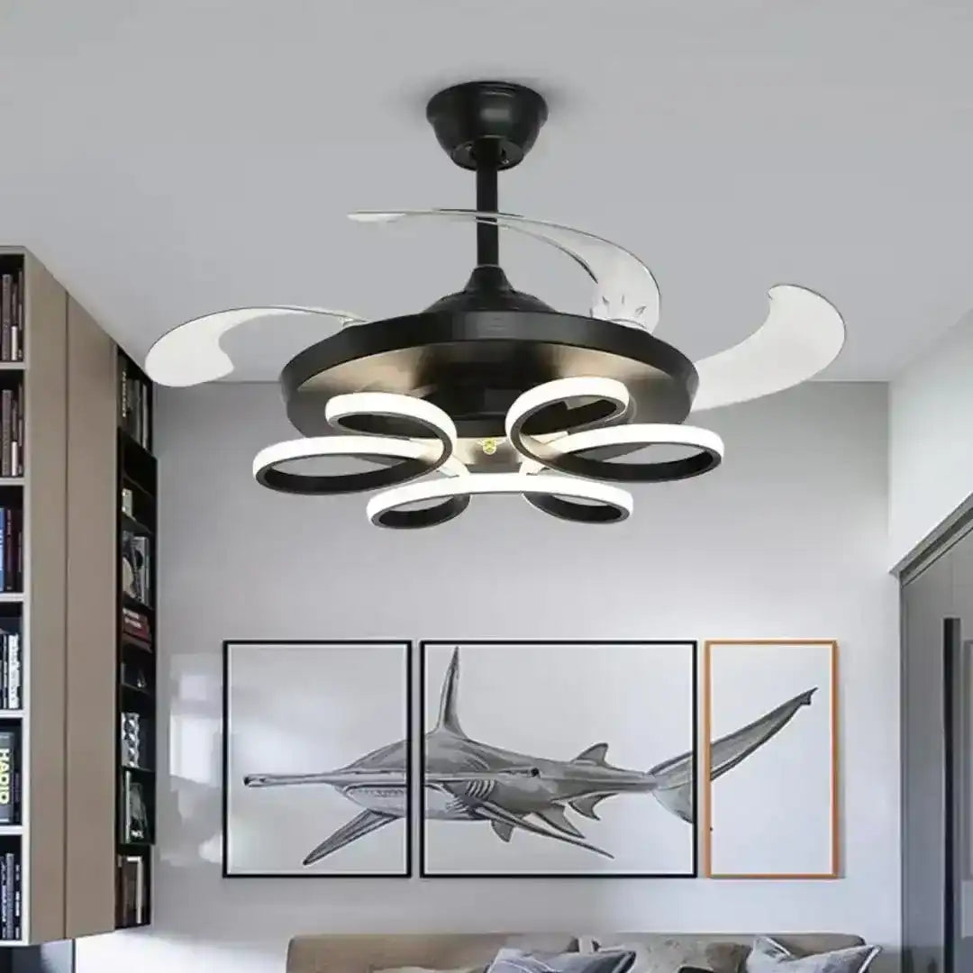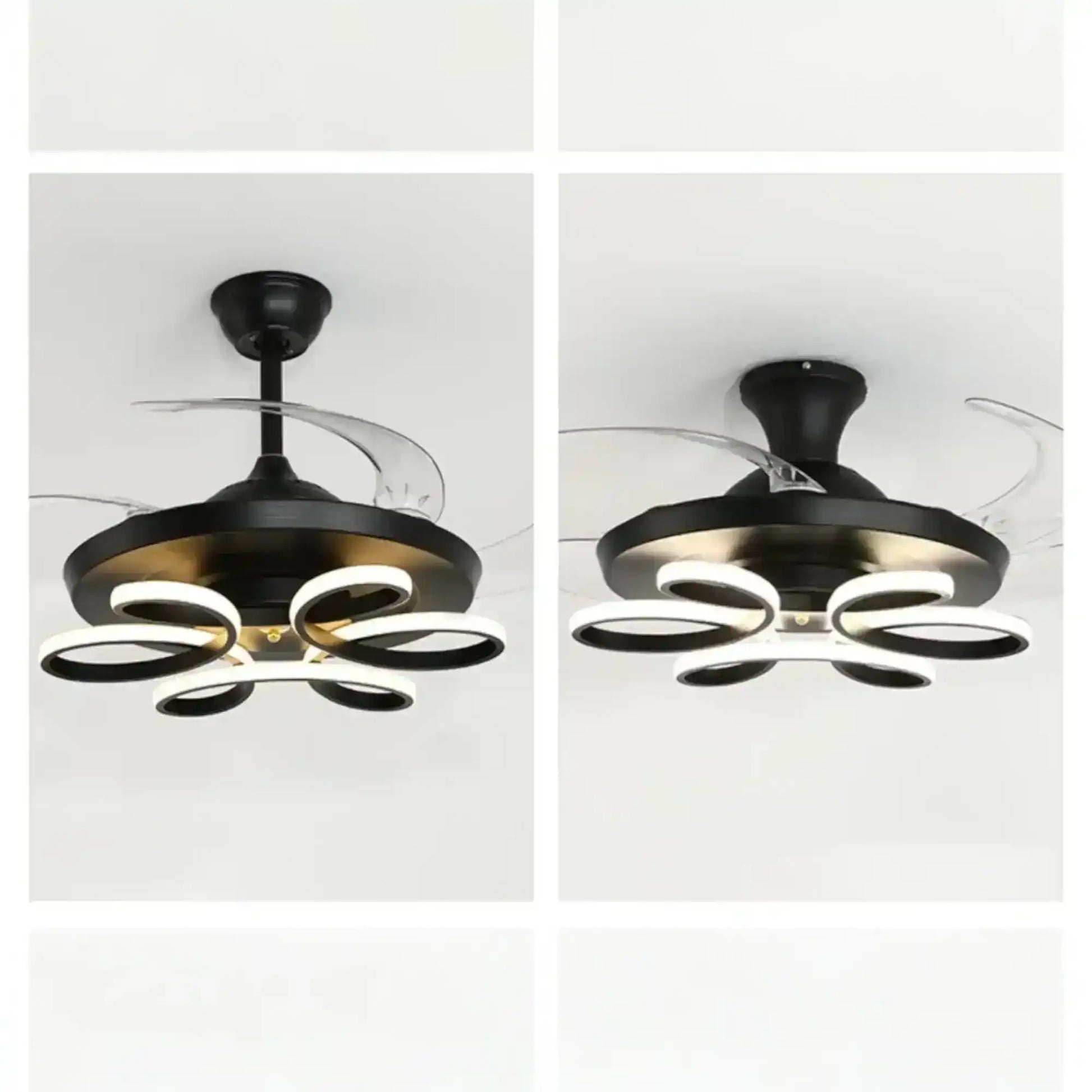 Hdc Black Flower Led 3 Color Setting Control With Remote Transparent Retractable Fan Blade Chandelier