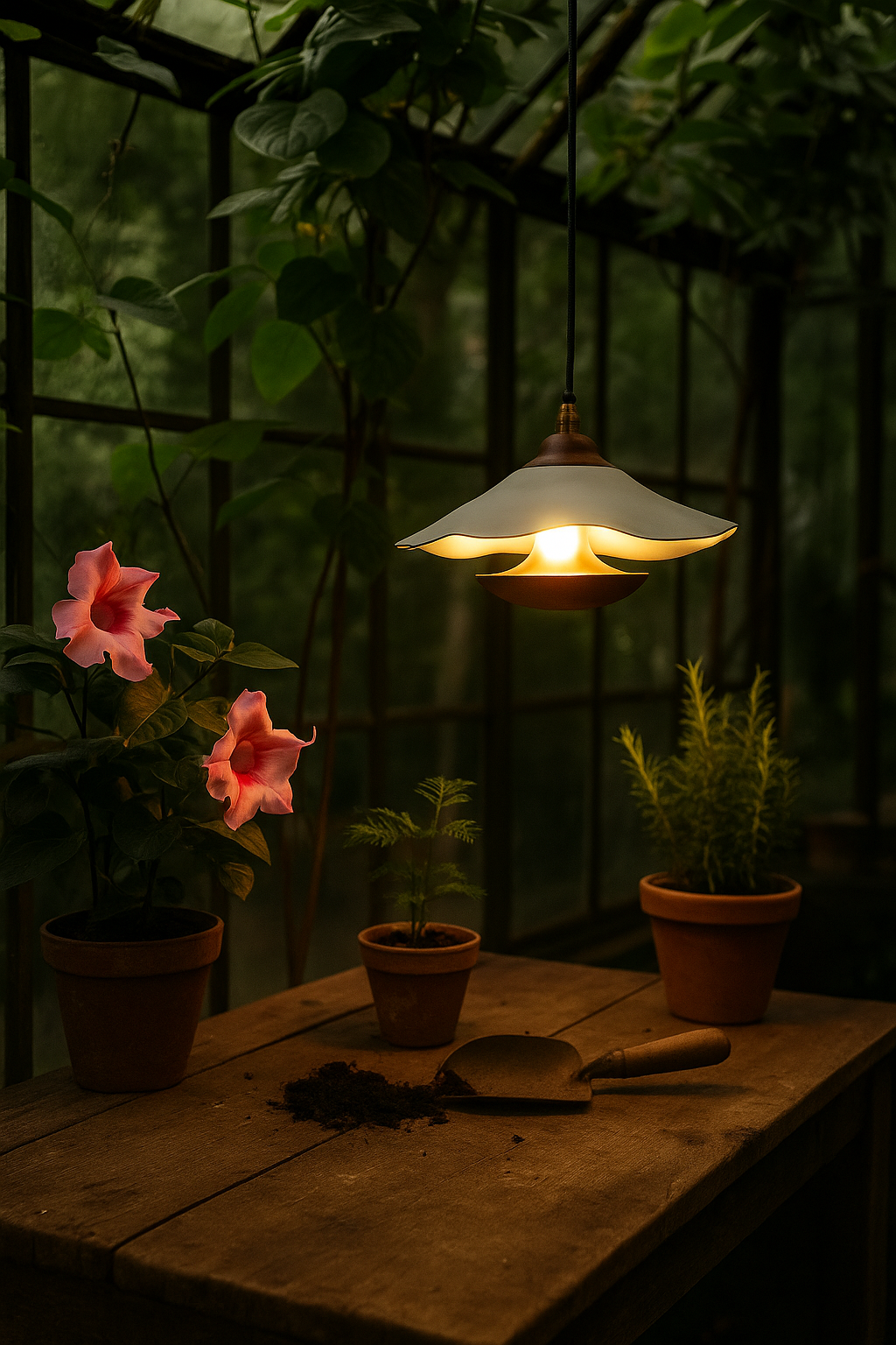 Crafted with a sculpted ceramic shade featuring smooth, flowing wave contours that resemble a blooming flower. This organic shape diffuses light beautifully and adds an artistic aesthetic to any bedroom, dining corner, or modern living room. -