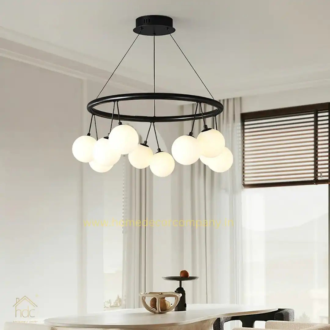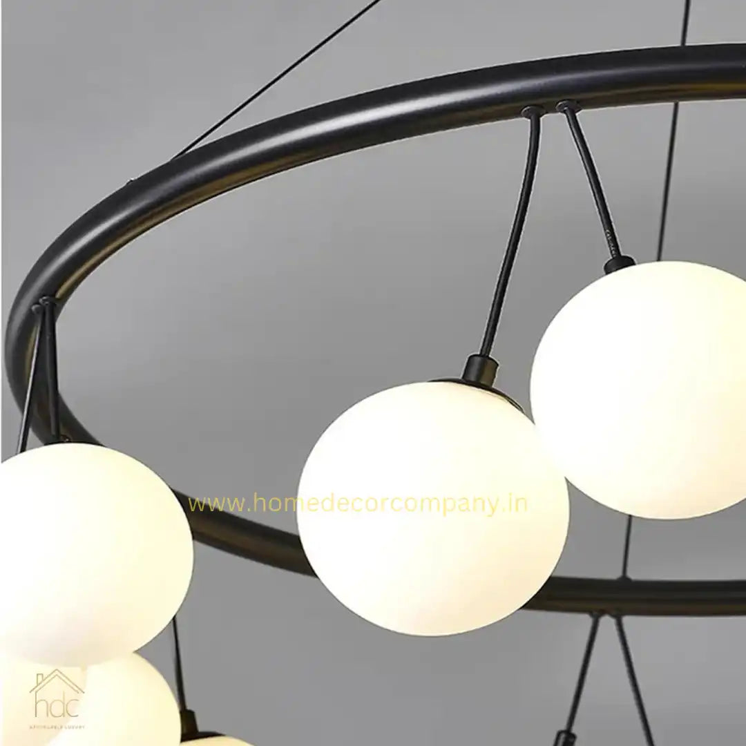 HDC Circular Frame Multiple Spherical Glass Shade Chandelier For Living Room Bedroom