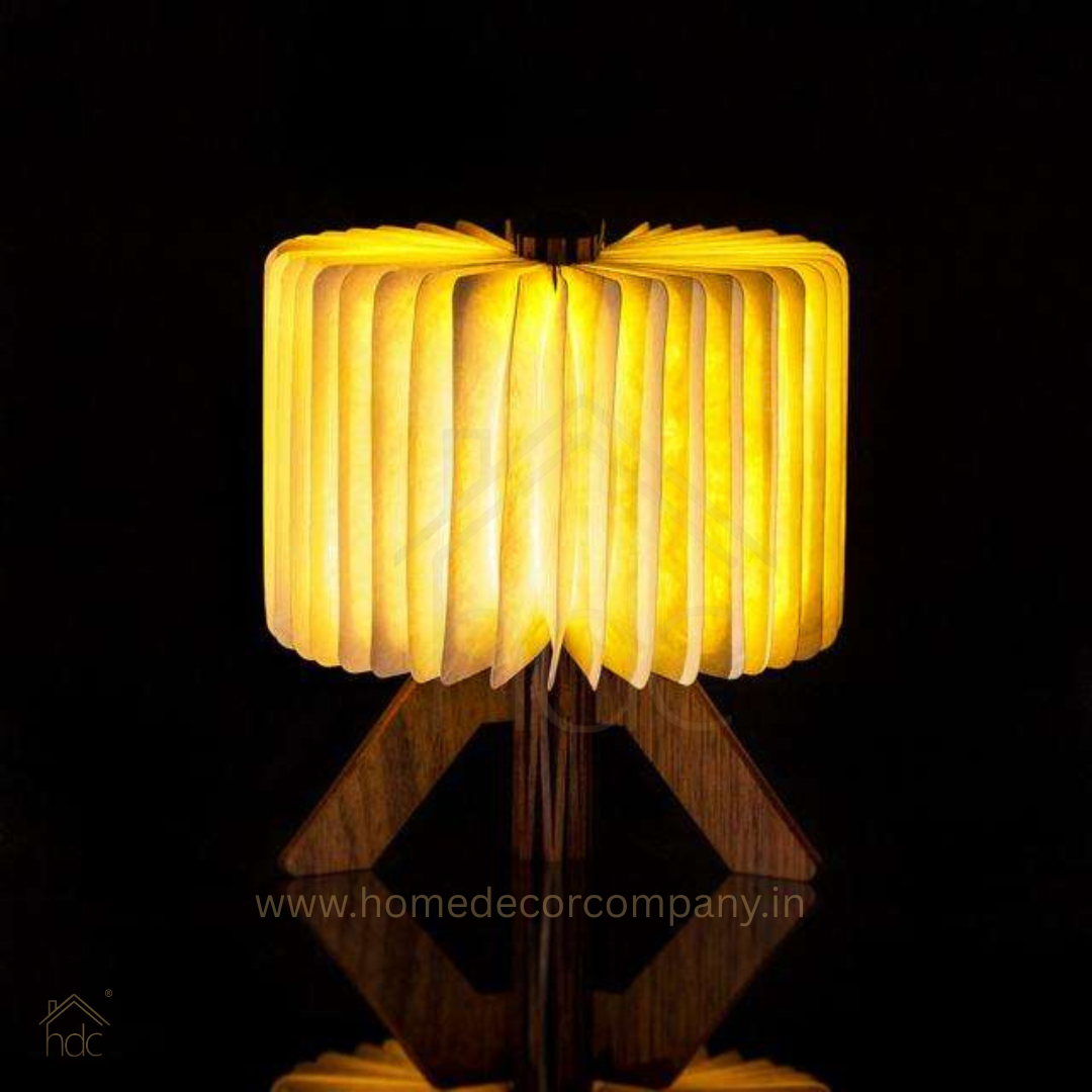 HDC Foldable Book Style Paper Table Lamp with Wooden Base 360° Ambient Light Decorative Lamp for Bedroom, Desk & Living Room