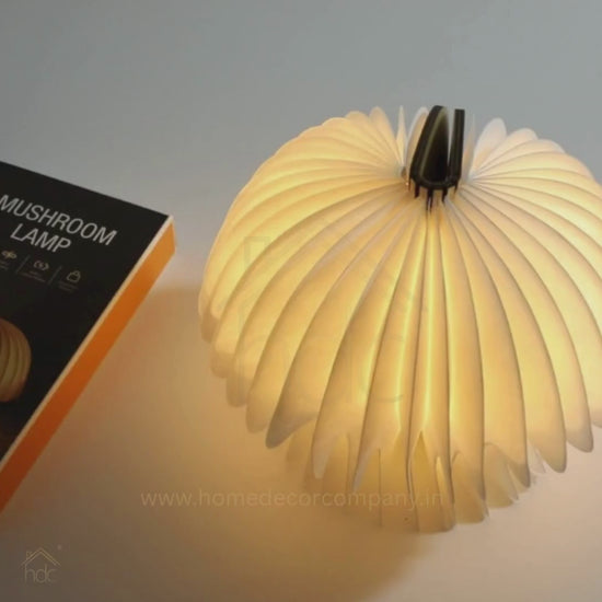 HDC Foldable Mushroom Style Paper Table Lamp 360° Warm Ambient Decorative Light for Bedroom, Bedside & Living Room