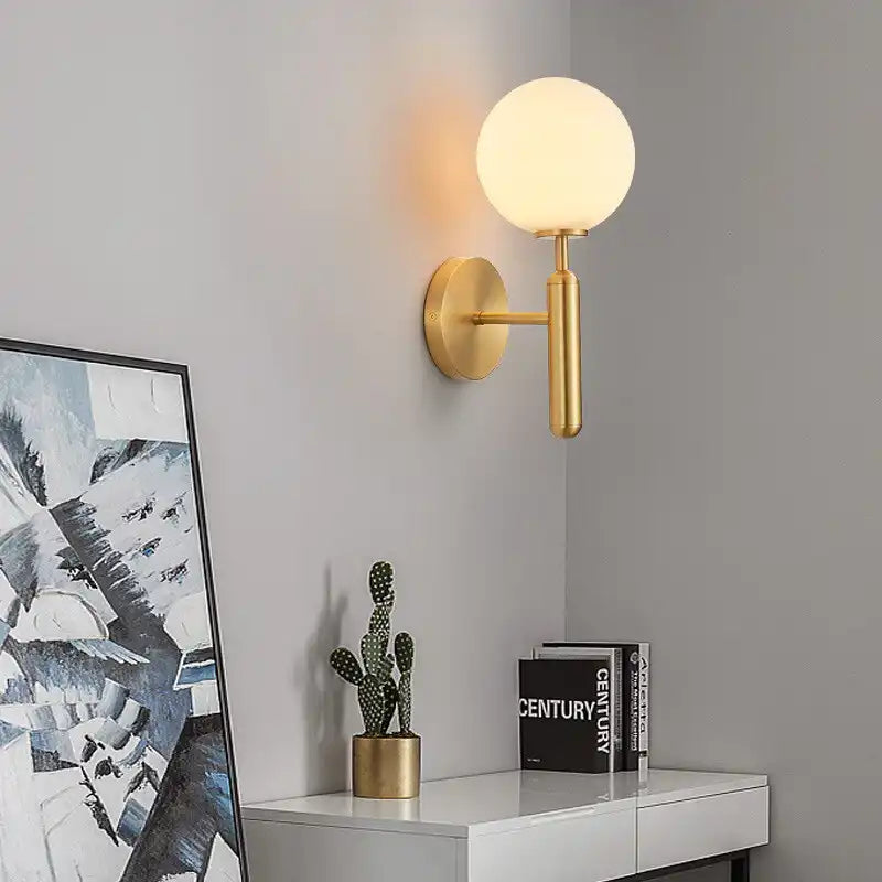 HDC Gold Finish 1 Head Frosted Glass Ball Light Wall Lamp For Living Room