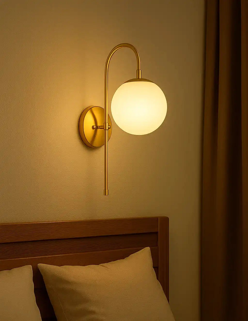 HDC Gold Finish 1 Head Frosted Glass Ball Light Wall Lamp For Living Room