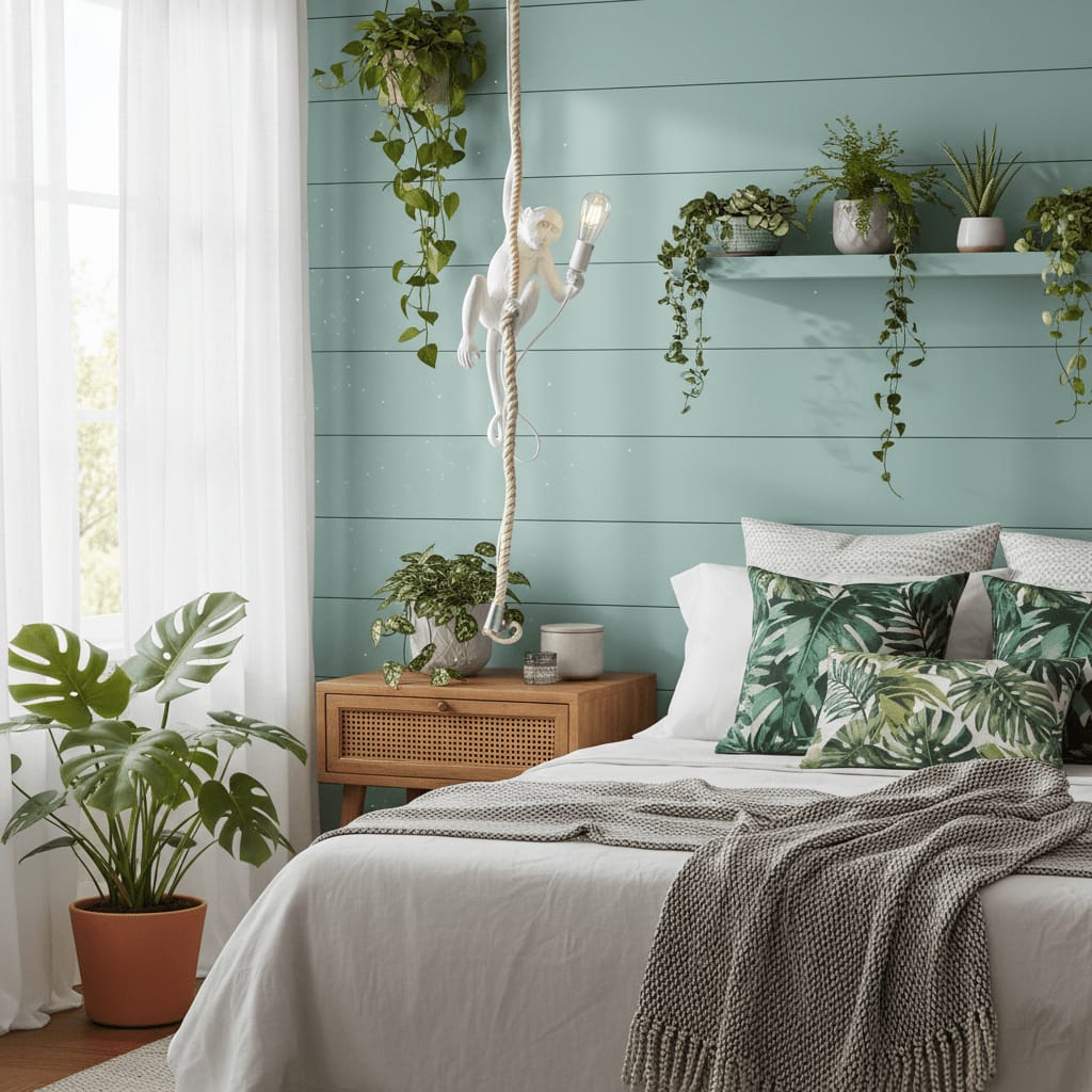 Hdc Hemp Rope Monkey Creative Retro Cafe Ceiling Light for Kids Bedroom, Cafe