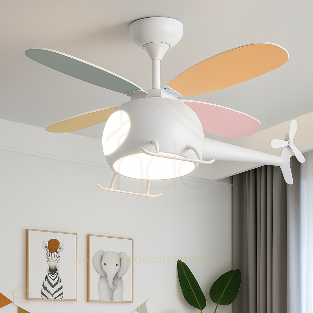 - Turn your child’s room into a playful and imaginative space with the Kids’ Helicopter Ceiling Fan with LED Light.