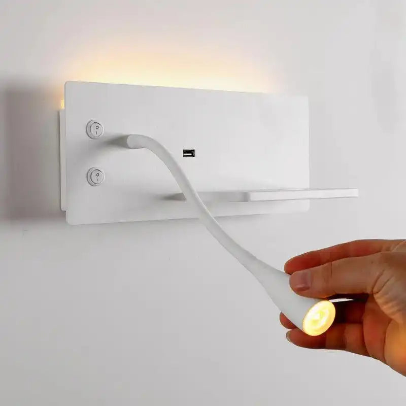 Hdc Led White Gooseneck Led Wall Light With Usb And Wireless Charging - Warm White