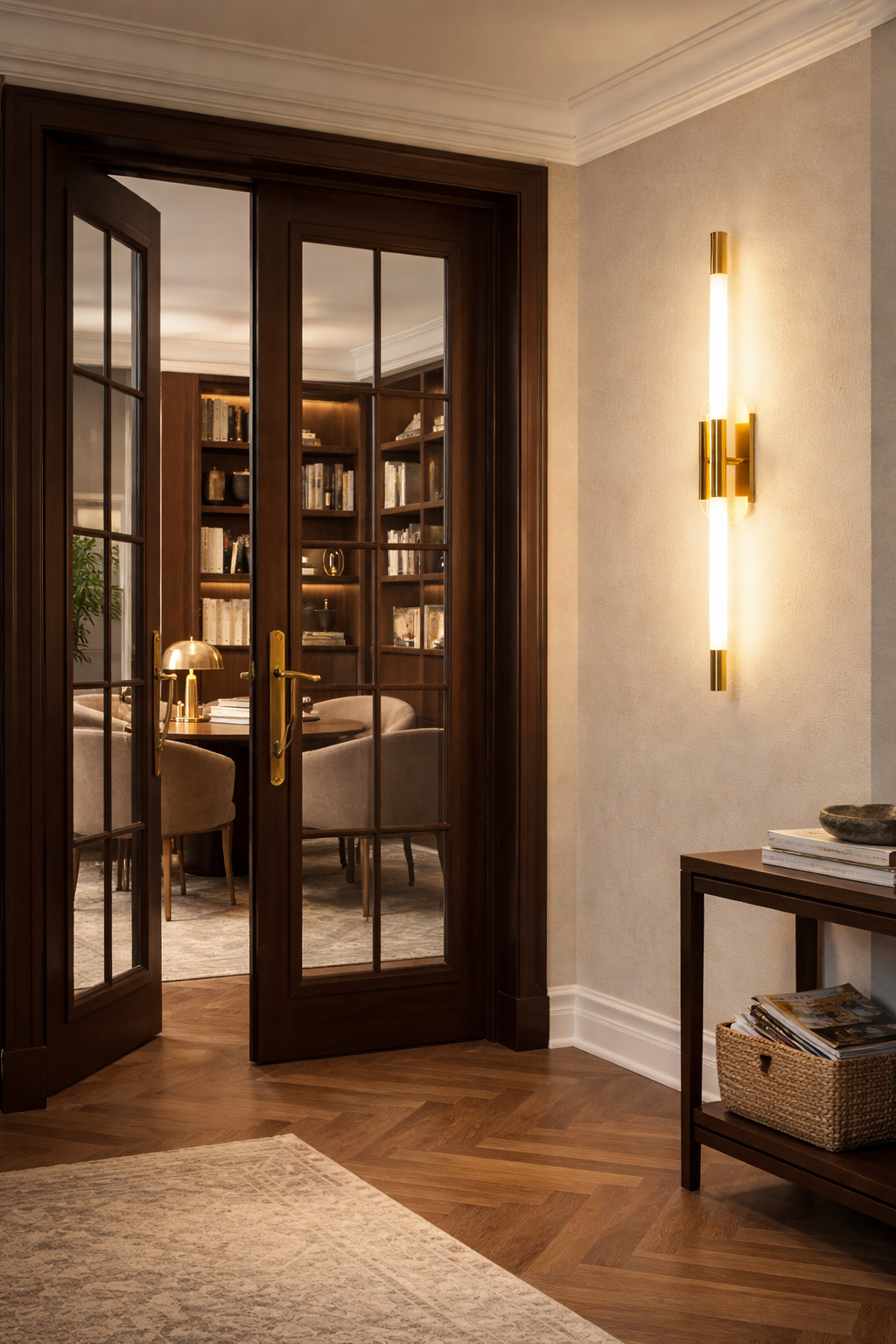 - Elegant vertical LED wall light with a premium gold finish, designed to add a refined modern touch to luxury interiors.