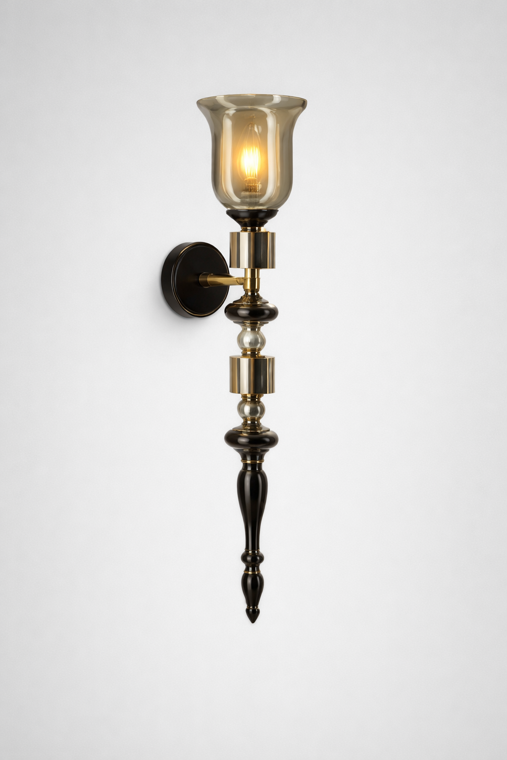 HDC Luxury Vintage Brass & Glass Wall Light for Bedroom, Living Room & Hallway