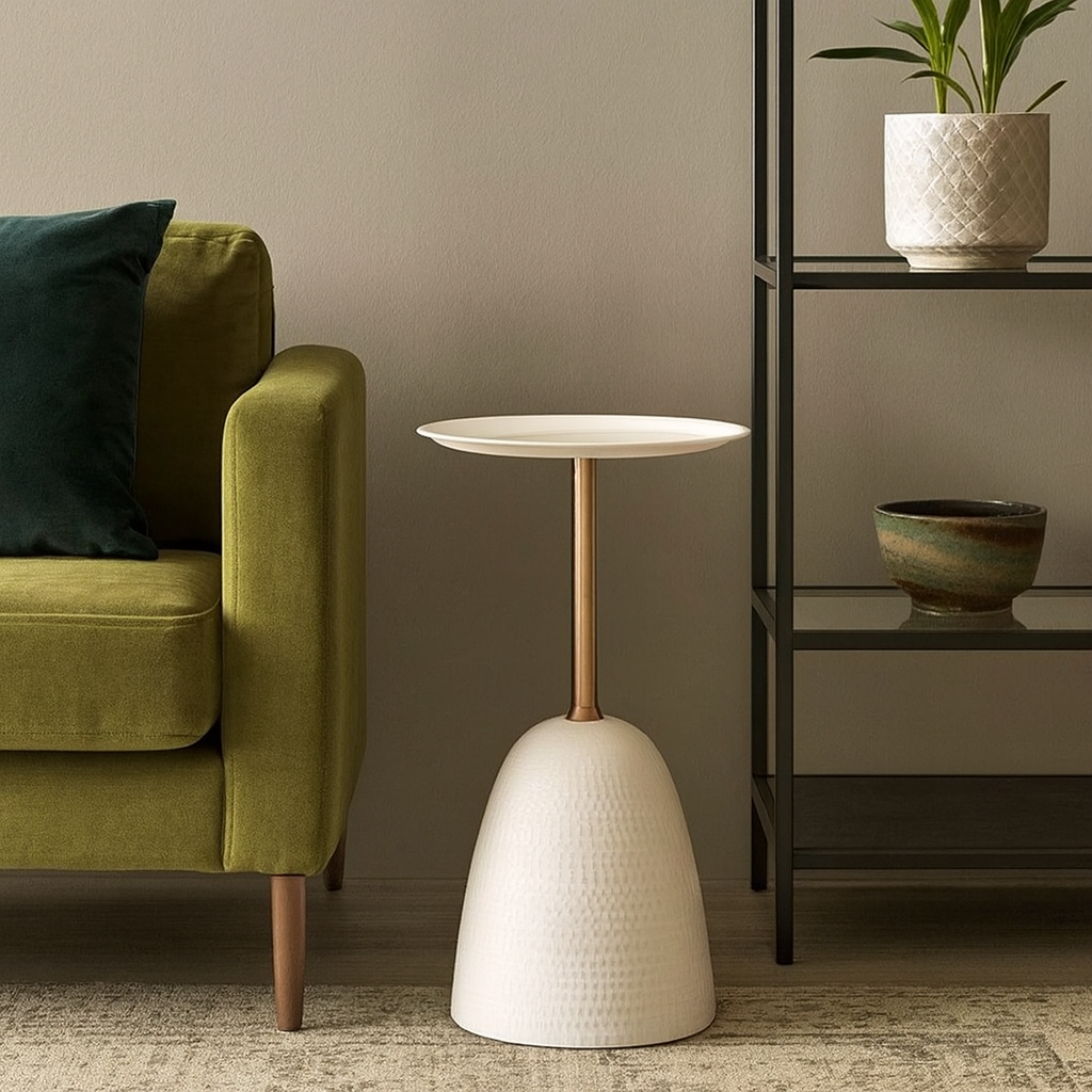 HDC Metal Side Table Tray, Small Accent Table Nightstand for Bedside Or Sofa, Round Bar Table Coffee Table for Living Room, Bedroom, Home, Office (Color : WHITE)